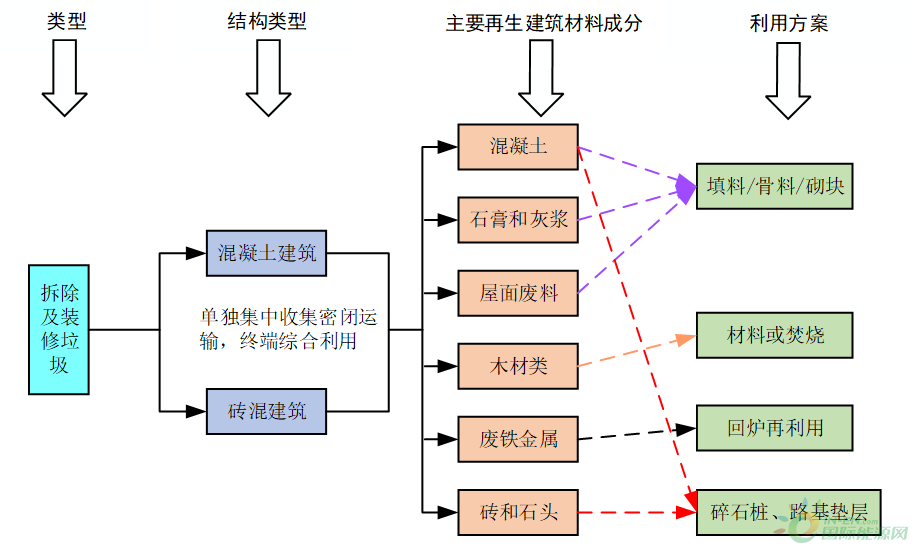 圖2 拆除及裝修垃圾再生資源化利用產(chǎn)品方案示意圖