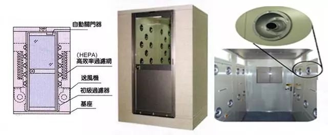 風(fēng)淋室設(shè)于無(wú)塵室入口處,具有以下功能:
