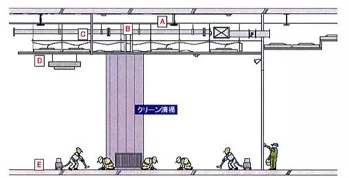 以A?B?C?D?E的順序、從上往下進(jìn)行清掃。