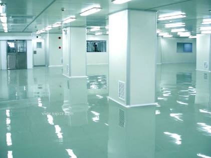 車間的地面要用防滑,堅固,不滲水,易清潔,耐腐蝕的材料鋪制,凈化車間地面表面要平坦,不積水。車間整個地面的水平在設計和建造時應該比廠區的地面水平略高,地面有的斜坡度。