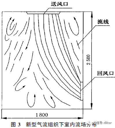(2)要滿足相同的潔凈度等級, 新型氣流組織下送風換氣量要比常規氣流組織下送風換氣量大一倍。因此, 對于大面積1000 級無塵車間, 這種氣流組織形式是不可取的。