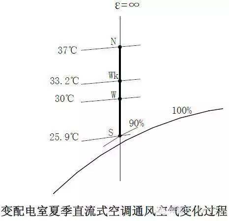 (1)變配電室基本無(wú)散濕量,熱濕比ε=∞。