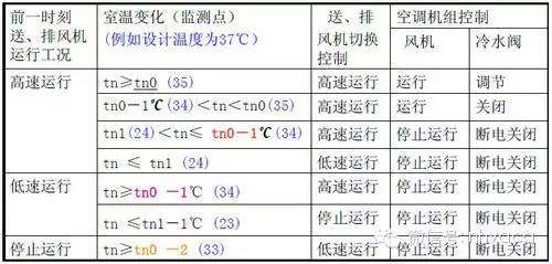 注:循環(huán)風(fēng)空調(diào)機(jī)組風(fēng)機(jī)是否投入運(yùn)行的切換點(diǎn)理論上是“轉(zhuǎn)換控制采用的