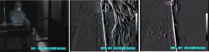 左邊是拍擊一般的工作服時發塵的樣子。右邊是拍擊潔凈服時發塵的樣子。