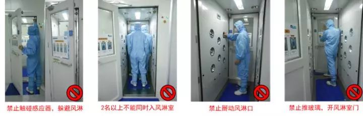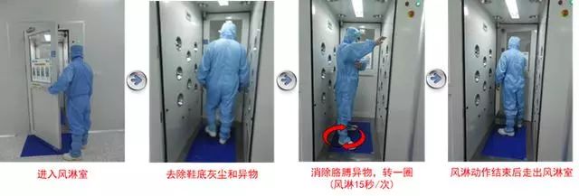 Class10,000區人員至Class100,000區作業后,若需重回Class10,000區者需經AIR SHOWER吹送后方可重回Class10,000區;而穿著Class100,000區無塵衣人員絕對禁止至Class10,000區。