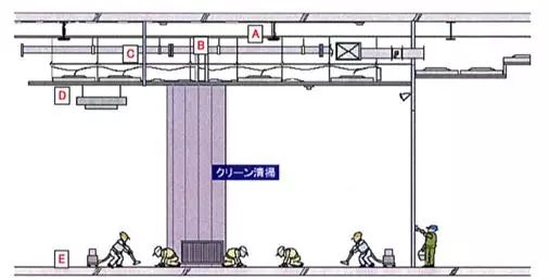 以A?B?C?D?E的順序、從上往下進行清掃。