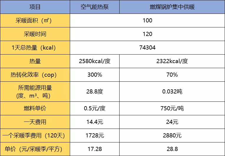 首先我們以供暖面積100㎡來算一筆煤價還沒瘋漲之外的經濟賬: