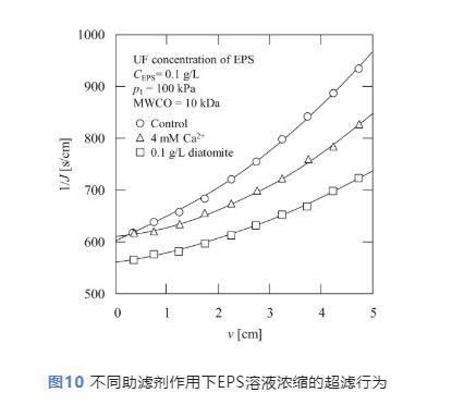 如圖10所示,Ca2+作用時EPS濃縮回收過程(第一階段)的過濾阻抗減小,而硅藻土助濾劑作用時過濾阻抗進一步降低。