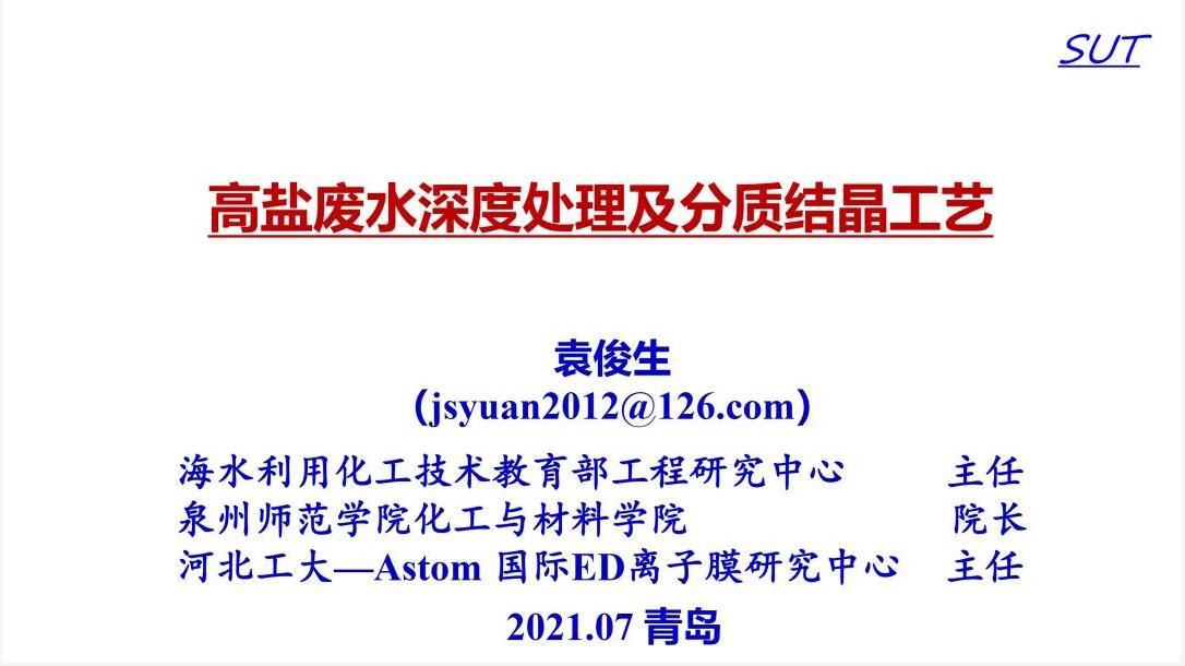 本次分享的是海水利用化工技術教育部工程研究中心主任、泉州師范學院化工與材料學院院長、河北工大-Astom國際ED離子膜研究中心主任袁俊生在會上所作的報告《高鹽廢水深度處理及分質結晶工藝》。
