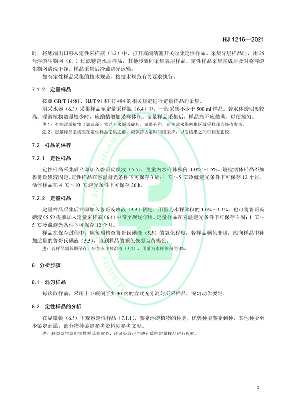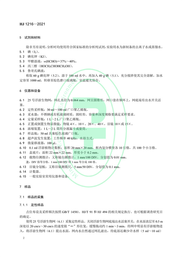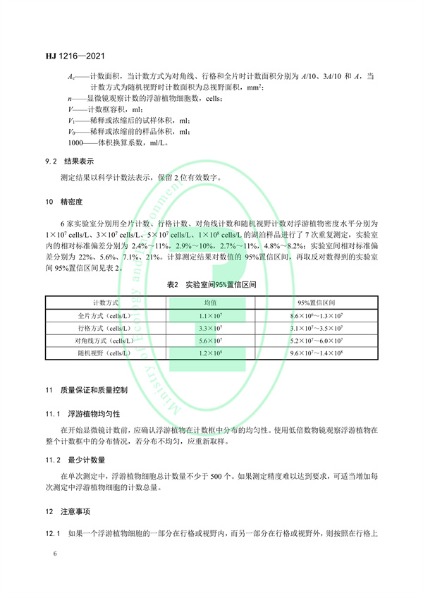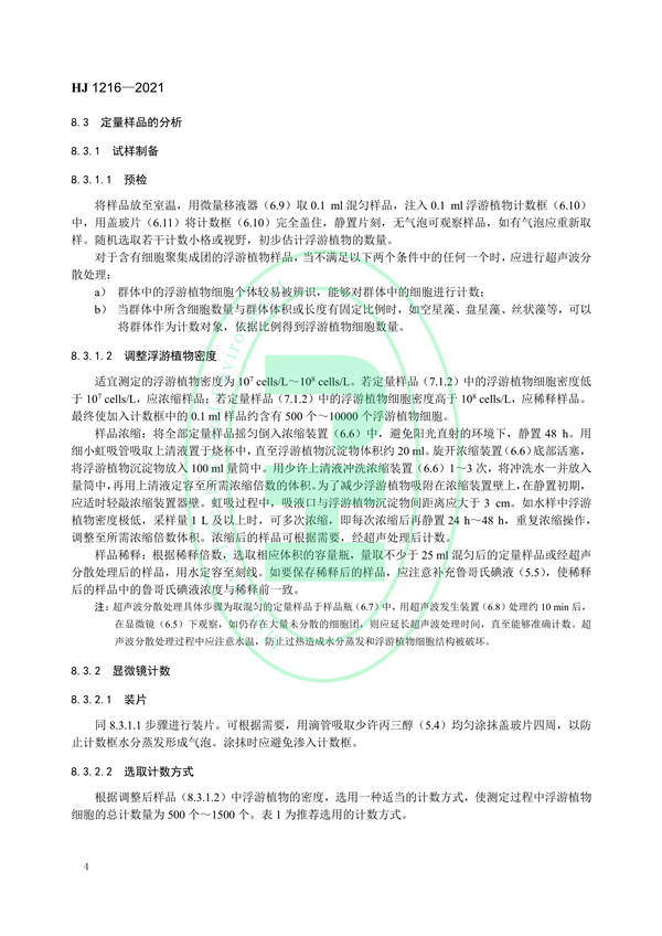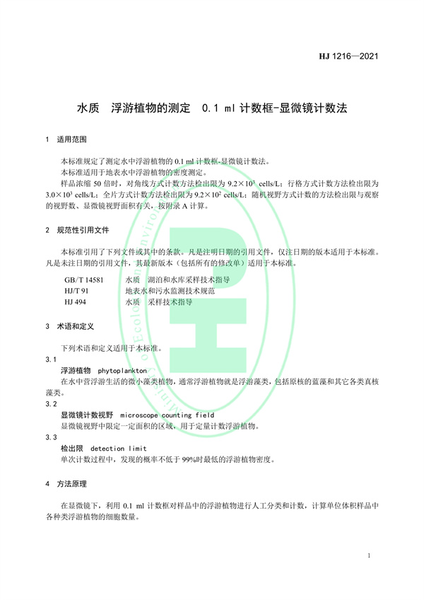 為貫徹《中華人民共和國環境保護法》《中華人民共和國水污染防治法》,防治生態環境污染,改善生態環境質量,規范水中浮游植物的測定方法,生態環境部制定了《水質浮游植物的測定0.1ml計數框-顯微鏡計數法》(HJ 1216-2021)。本標準為首次發布,適用于地表水中浮游植物的測定。浮游植物是水生生物的組成部分,作為一個重要的營養級代表,是水生態監測中不可缺少的內容。浮游植物密度也是地表水水質表征、水華預警等的重要指標之一。該標準作為地表水中浮游植物的監測方法,可為開展水生態監測,服務流域生態環境保護工作提供支撐。標準詳情如下: