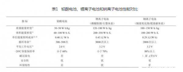 鋰離子電池和鉛酸電池,是目前市場(chǎng)上主流的二次電池技術(shù)。根據(jù)中關(guān)村儲(chǔ)能產(chǎn)業(yè)技術(shù)聯(lián)盟整理的數(shù)據(jù),2019年我國(guó)電化學(xué)儲(chǔ)能新裝機(jī)技術(shù)分布中,鋰離子電池占比70.7%,鉛酸電池占比27.2%,剩余為液流電池、超級(jí)電容器、鈉硫電池等。表1中列出了鋰離子電池、鉛酸電池以及鈉離子電池的常見(jiàn)的技術(shù)指標(biāo),所涉及的值均基于單體電芯。誕生于19世紀(jì)的鉛酸電池是一種技術(shù)成熟的二次電池,廣泛應(yīng)用于生活、軍事的諸多領(lǐng)域,包括電動(dòng)自行車動(dòng)力電源、汽車啟動(dòng)電源、通訊基站應(yīng)急電源等。經(jīng)過(guò)一百多年的技術(shù)更新,其能量密度、使用壽命、成本等已經(jīng)到了瓶頸。雖然鉛酸電池與鋰離子相比,在能量密度、循環(huán)壽命、環(huán)境影響等方面存在明顯劣勢(shì),但其售價(jià)較低且有回收價(jià)值,使鉛酸電池仍然具有可觀的市場(chǎng)占有率。鋰離子電池有很多體系,根據(jù)正極可以分為鈷酸鋰、三元、磷酸鐵鋰、錳酸鋰等體系,根據(jù)負(fù)極可以分為石墨、鈦酸鋰等。磷酸鐵鋰/石墨體系具有較低的成本、較高的能量密度、較好的安全性以及超長(zhǎng)的循環(huán)壽命,和鈉離子電池在高性價(jià)比、高安全性等方面的定位較為相似,故選擇該體系進(jìn)行對(duì)比。