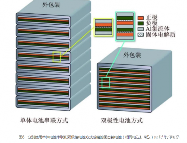 (3)開(kāi)發(fā)固態(tài)電池技術(shù),著重開(kāi)發(fā)新型鈉離子固體電解質(zhì),進(jìn)一步提高鈉離子電導(dǎo)率,并解決固固界面難題;引入雙極性電池技術(shù),進(jìn)一步提高能量密度(圖6);